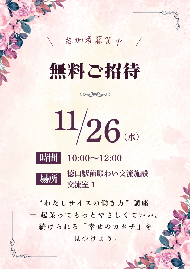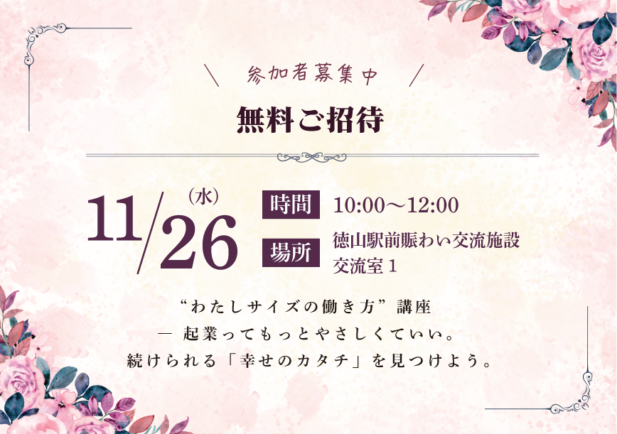 | 場所 | 徳山駅前賑わい交流施設 交流室1 ( 山口県周南市御幸通2丁目28−2) |